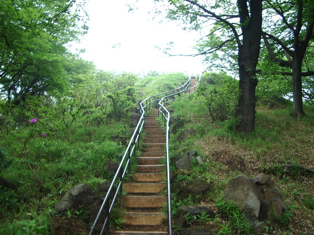 箱根山全景。階段を上ると頂上に上がれる。